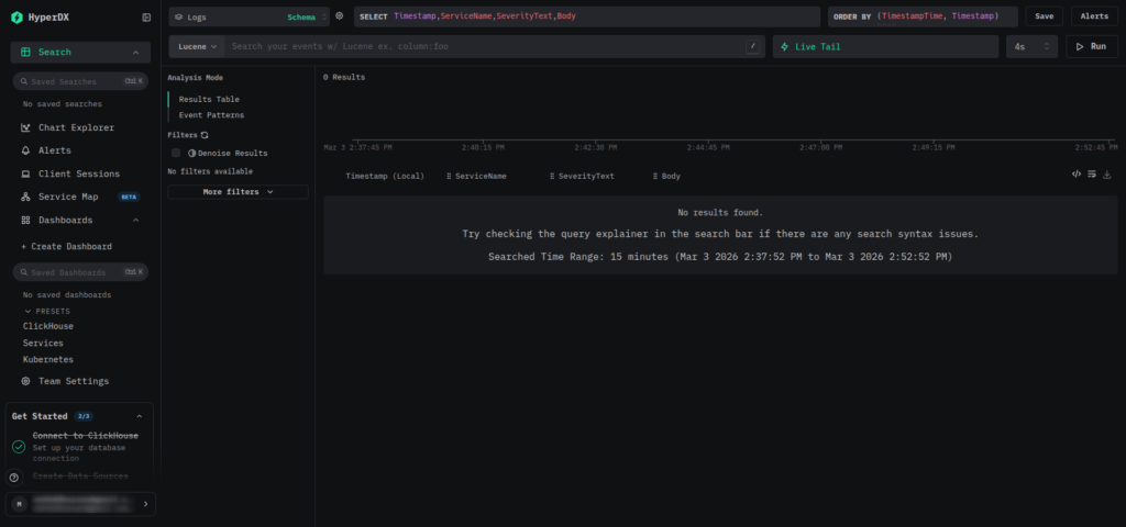 ClickStack, an embedded observability UI available in ClickHouse 26.2 and later, can be accessed directly from the built-in HTTP interface.